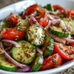 With these ingredients working together, you’ll create a vibrant and delicious dish that’s not only refreshing but also packed with flavor. Each bite of marinated cucumbers, onions, and tomatoes is a celebration of summer, making it a must-try for your next gathering!