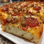 Keywords: Meat Lovers Pizza Bread, pizza bread, meat pizza, savory bread, homemade pizza, easy pizza recipe, stuffed bread, Italian bread, cheesy bread, comfort food, party food, appetizer recipe, baking bread, quick meal