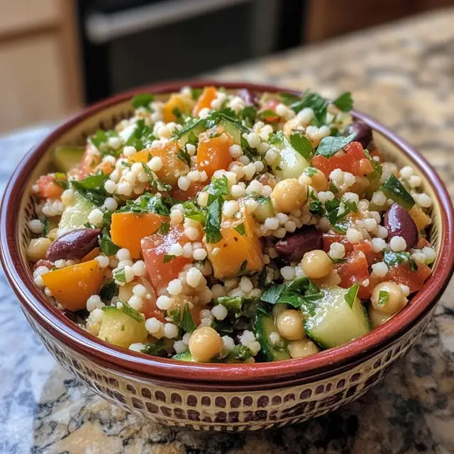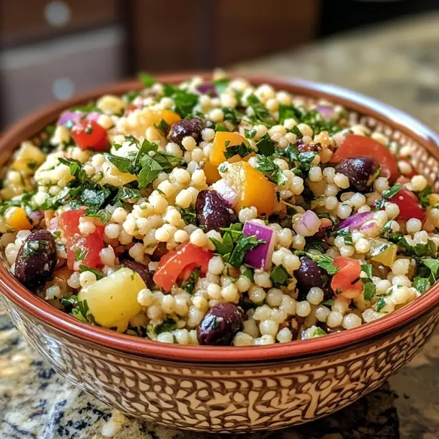 A refreshing Mediterranean Couscous Salad that combines vibrant vegetables, fluffy couscous, and a zesty dressing for a perfect side dish or light meal.