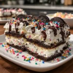Before serving, add a festive touch! Sprinkle some additional funfetti sprinkles and crushed Oreos on top. This not only looks beautiful but also adds extra flavor. Slice it up, serve, and watch everyone’s faces light up with joy!
