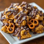 Keywords: No-Bake Peanut Butter Pretzel Clusters, peanut butter snacks, no-bake desserts, sweet and salty treats, easy dessert recipes, chocolate pretzel clusters, quick snacks, vegetarian treats, party snacks, homemade candy, crunchy clusters, kid-friendly recipes, simple desserts