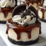 Indulge in these Oreo Chocolate Mini Cheesecakes with a crunchy Oreo crust and a rich, velvety chocolate filling topped with a glossy ganache.