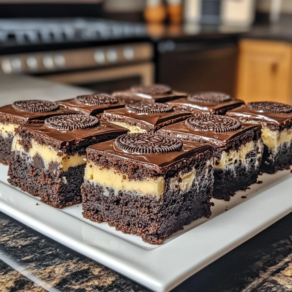 Deliciously spooky brownies layered with Oreo cookies, perfect for Halloween celebrations.