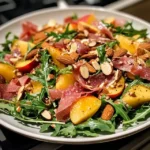 Introduction to Peach, Arugula & Prosciutto Salad with Toasted Almonds