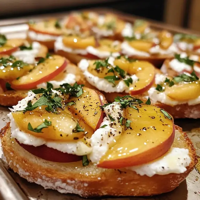 - Grilled Peaches: For a smoky flavor, grill the peach slices before adding them to the crostini. This adds a delightful char that enhances the sweetness.