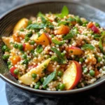 Creating this Peach, Pea & Mint Couscous Salad is more than just a cooking task; it’s a joyful experience that brings a burst of summer to your table. The vibrant colors and fresh flavors remind me of sunny picnics and laughter-filled gatherings. It’s a dish that not only nourishes but also delights the senses. Whether you’re serving it at a family barbecue or enjoying it as a light lunch, this salad is sure to bring smiles. I hope you find as much joy in making and sharing it as I do. Happy cooking!
