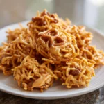 Imagine a delightful treat that combines the satisfying crunch of crispy chow mein noodles with the creamy richness of peanut butter and the sweet, buttery flavor of butterscotch. Each bite of Peanut Butter–Butterscotch Haystacks is a symphony of textures and tastes, where the crispiness of the noodles meets the velvety smoothness of the coating. This nostalgic dessert brings back memories of childhood kitchen adventures, where the joy of creating something delicious was only matched by the excitement of sharing it with family and friends. Perfect for parties, holiday gatherings, or simply as a sweet indulgence after a long day, these haystacks are sure to evoke smiles and cravings alike.