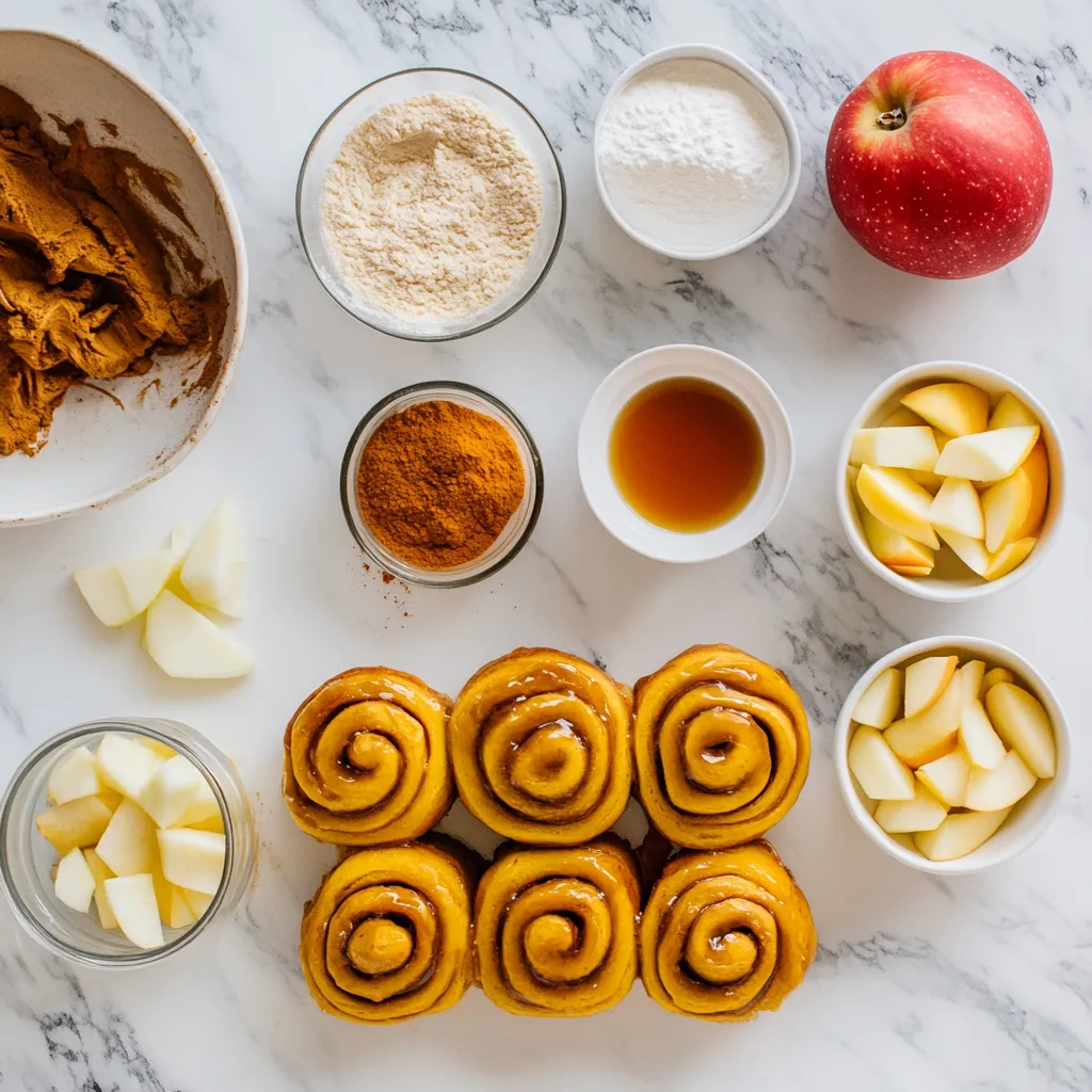 Gathering the right ingredients is the first step to creating these delightful Pumpkin Apple Cinnamon Rolls with Maple Glaze. Here’s what you’ll need: