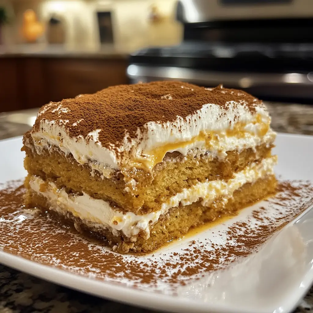 A delightful twist on the classic tiramisu, infused with the warm flavors of pumpkin spice, perfect for fall celebrations.