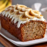 Once baked, let the banana bread cool in the pan for about 10 minutes. Then, carefully transfer it to a wire rack to cool completely. While it cools, prepare your frosting by beating together the cream cheese, powdered sugar, and vanilla extract until smooth. Once the bread is cool, spread that luscious frosting on top and get ready to enjoy!