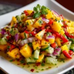 Imagine a bowl overflowing with vibrant colors—sunny yellow mangoes, crisp green cucumbers, and the fiery red of bell peppers, all mingling together in a delightful dance. The textures are just as captivating: the juicy, tender mangoes provide a luscious sweetness, while the crunchy vegetables add a satisfying bite. As you take a whiff, the zesty aroma of fresh lime and fragrant cilantro fills the air, instantly transporting you to a sun-soaked beach or a lively summer gathering.