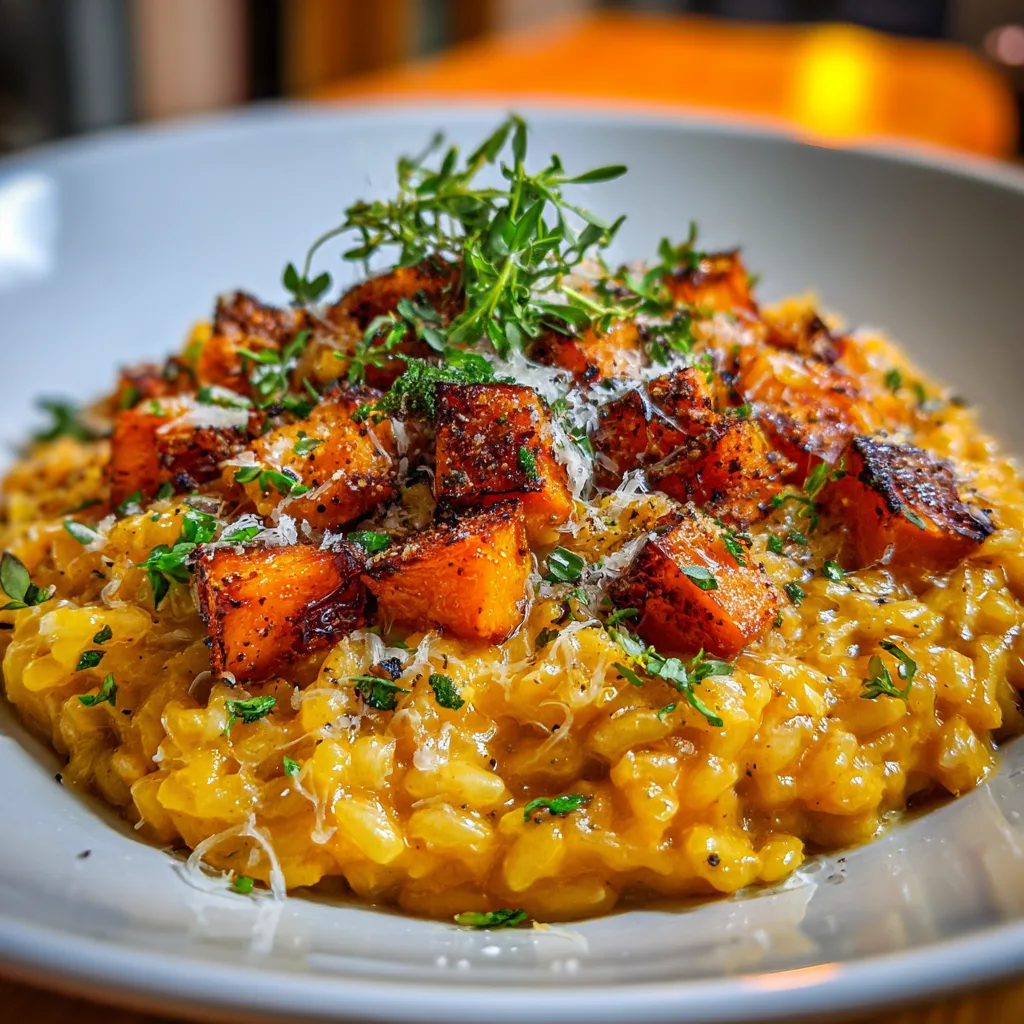 A creamy and flavorful risotto made with roasted butternut squash, perfect for a comforting meal.