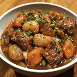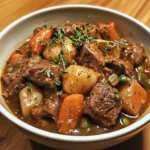 A hearty and comforting slow-cooked beef stew, rich in flavor and perfect for chilly days.