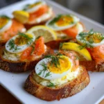 Imagine a gathering where laughter fills the air, and the aroma of freshly baked crostini wafts through the room. As you take a bite of the crispy bread topped with a velvety egg mousse and delicate smoked salmon, your taste buds awaken to a symphony of flavors. The creamy richness of the mousse, infused with fresh dill and a hint of lemon, perfectly complements the smoky, savory notes of the salmon. This dish is not just food; it’s an experience that transforms any occasion into a celebration. Whether it’s a festive brunch, a sophisticated cocktail party, or a cozy family gathering, Smoked Salmon Crostini Egg Mousse is the perfect appetizer to impress your guests and create lasting memories.