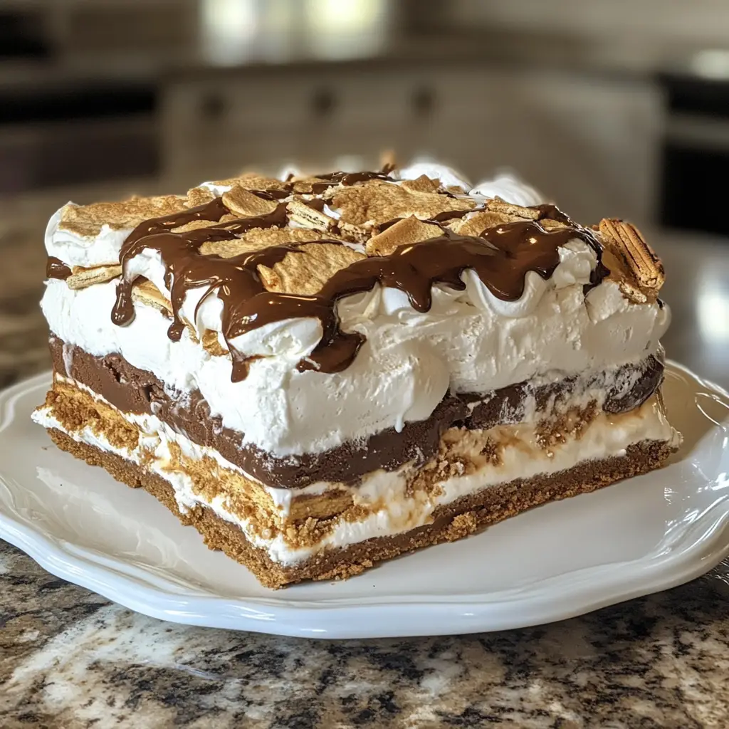 A delightful dessert combining the flavors of s’mores with the creaminess of ice cream, all layered in a cake form.