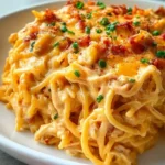 Now picture family and friends gathered around your dinner table, laughter filling the room, the warm golden crust of the casserole bubbling gently like a welcoming hug. As you serve generous portions, you can almost hear the collective sigh of happiness as they savor the creamy, cheesy goodness. The combination of savory chicken, softly cooked noodles, and the lingering hum of spice creates an irresistible symphony of flavors that dances on the palate. Prepare to be amazed—this Spicy Southern Cheesy Chicken Spaghetti Casserole will soon become a cherished staple in your home.