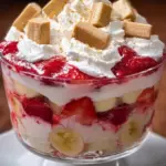 A no-bake dessert that combines creamy vanilla pudding with fresh strawberries and bananas, layered with crunchy vanilla wafers.