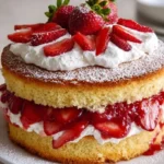 As you cut into this beautiful cake, the vibrant red strawberries nestling between fluffy layers of whipped cream create a stunning visual masterpiece. The moment you lift a forkful, your senses awaken. The sweetness of the strawberries twirls with the creamy texture of the whipped topping, while the cake itself provides a satisfying, soft crumb that welcomes each delicious element. This Strawberry Cream Cake surely deserves a place at your table for any occasion—a birthday, anniversary, or even a casual weekend treat. Its elegant presentation and delightful flavors will impress any guest while ensuring everyone feels the love baked into each slice.