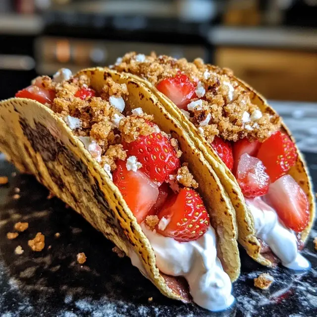 Time to make these tacos shine! Start by topping each filled taco with diced strawberries. The fresh fruit adds a pop of color and flavor. Next, drizzle some strawberry syrup over the top. This sweet touch enhances the strawberry flavor beautifully. Finally, sprinkle crushed graham crackers on top for that delightful crunch. It’s like a little party on each taco!