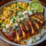 Keywords: Street Corn Chicken Rice Bowl, Mexican cuisine, chicken recipes, rice bowl, street corn, easy dinner, gluten-free meals, comfort food, quick recipes, flavorful dishes, summer recipes, healthy meals