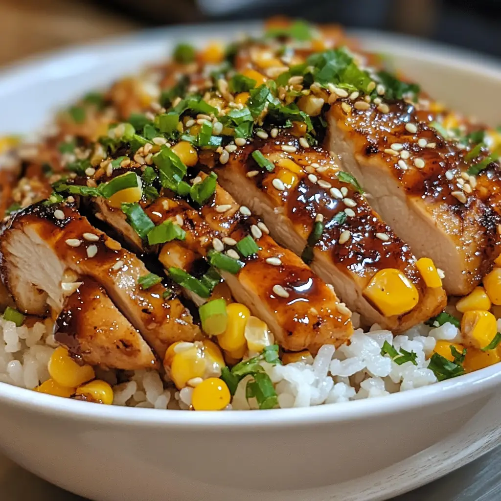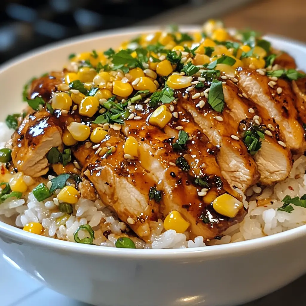 A delicious and vibrant Street Corn Chicken Rice Bowl that combines grilled chicken, sweet corn, and flavorful spices for a satisfying meal.
