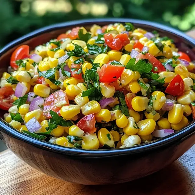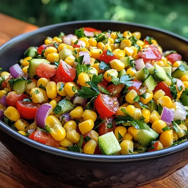 A refreshing and vibrant summer corn salad that combines fresh corn, vegetables, and a zesty dressing, perfect for warm weather gatherings.