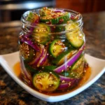 Imagine the moment you crack open a jar of Sweet and Spicy Bread and Butter Jalapeño Pickles. The sharp tang of vinegar mingles with the sweet aroma of sugar, while the vibrant green of the jalapeños and the deep red of the onions beckon you to take a bite. As you sink your teeth into the crisp vegetables, the initial crunch gives way to a delightful balance of sweetness and heat that dances on your palate. This recipe is not just about pickles; it’s a cherished family tradition that brings back memories of summer barbecues and cozy gatherings. Whether you’re hosting a backyard party or simply looking to elevate your weeknight dinner, these pickles are the perfect accompaniment, adding a zesty kick to any dish.
