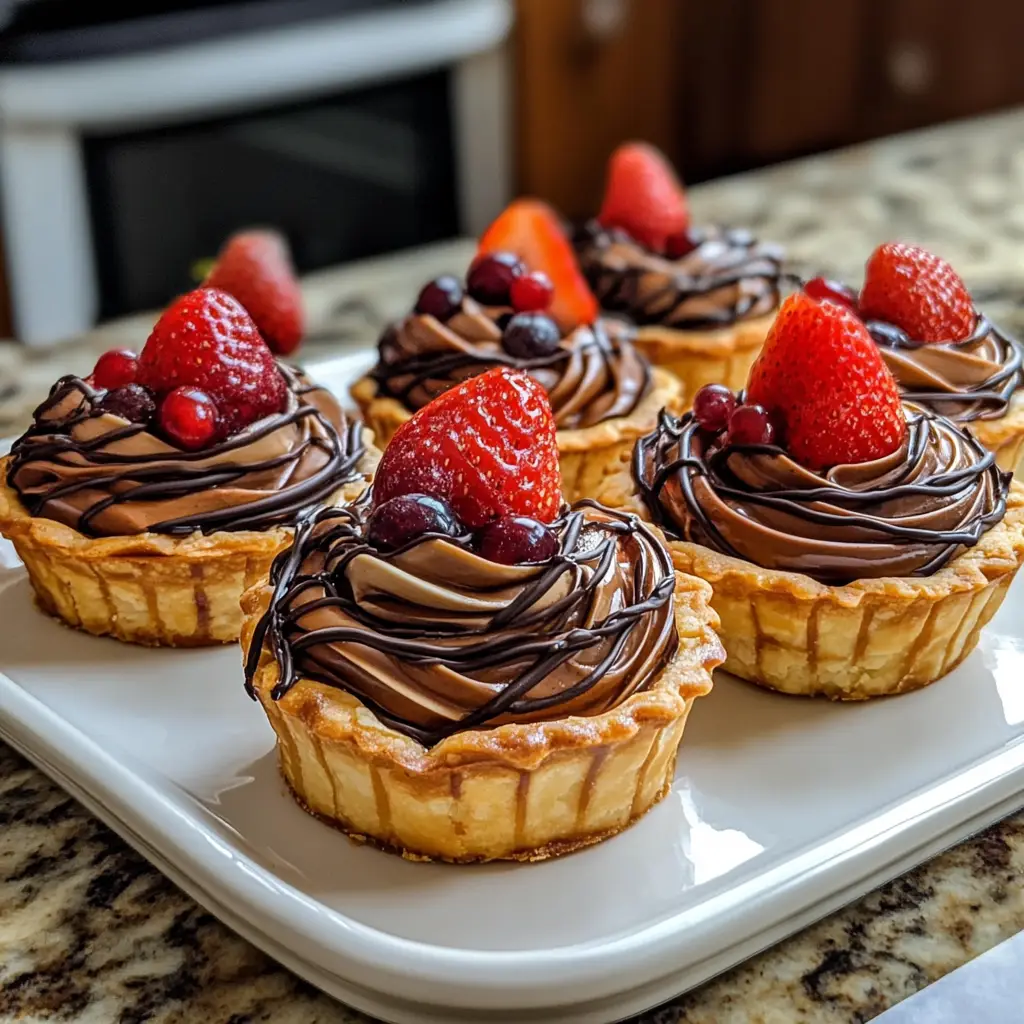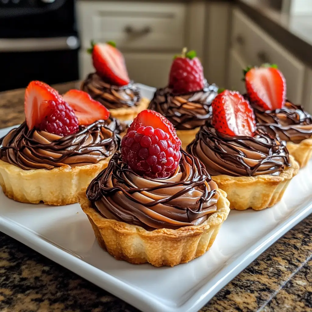 Delicious tartlets filled with a rich chocolate mixture and topped with swirled fresh fruits.
