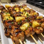 Teriyaki Chicken Skewers with Pineapple are a delicious and easy-to-make dish that combines tender chicken marinated in a savory teriyaki sauce with sweet pineapple chunks, grilled to perfection.