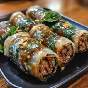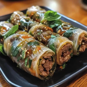Thai Basil Beef Rolls are a flavorful and aromatic dish that combines tender beef with fresh basil and a variety of spices, all wrapped in rice paper for a delightful bite.