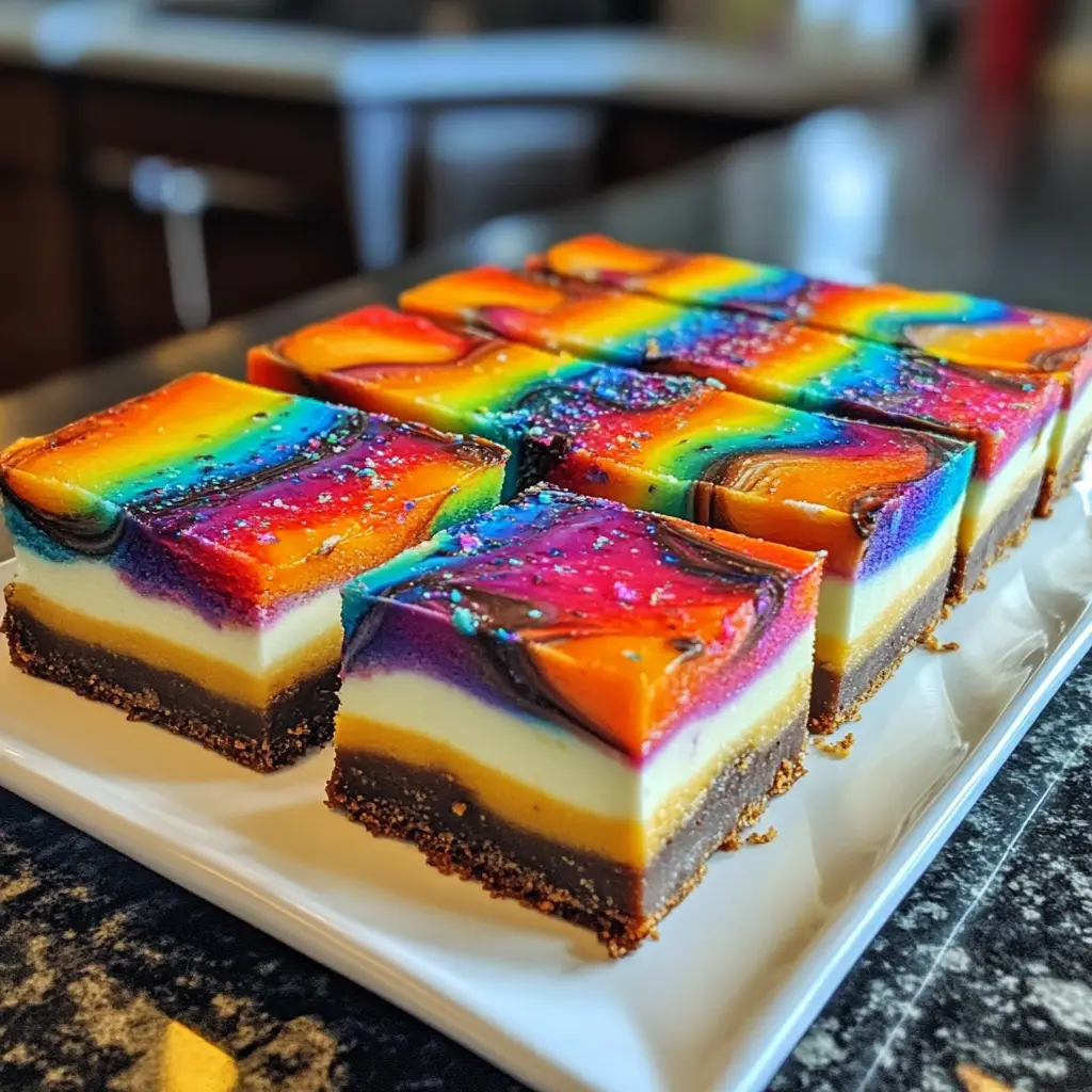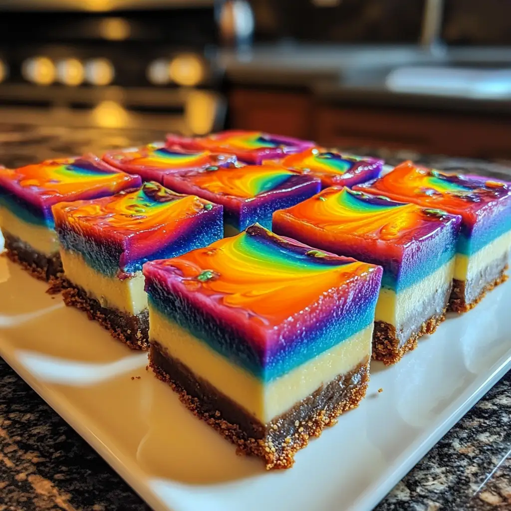 Creating these Tie-Dye Ombre Cheesecake Bars is more than just baking; it’s about bringing joy to your kitchen and your loved ones. The vibrant colors and creamy texture make every bite a celebration. Whether it’s a family gathering or a simple weeknight treat, these bars are sure to impress. Plus, the smiles on your family’s faces as they enjoy your creation are priceless. So, roll up your sleeves, unleash your inner artist, and let these delightful bars brighten your day. Trust me, you’ll find that baking can be a joyful escape from the everyday hustle!